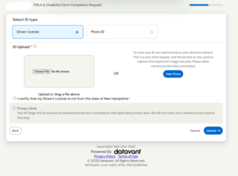 6) On the ID Page, you can either take a picture of your Driver’s License or Passport and upload it using the ID Upload, or you can allow the website to access your camera, (if applicable), and take the photo, and upload it automatically.
