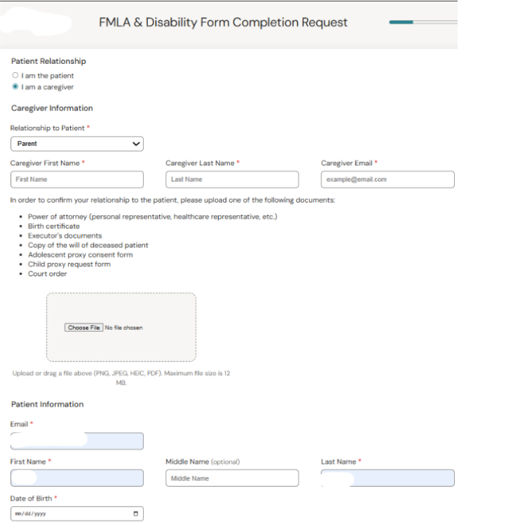 Sept 2025 - Caregiver Option was added into HealthForms, making it easier to differentiate between the Patient and Caregiver: